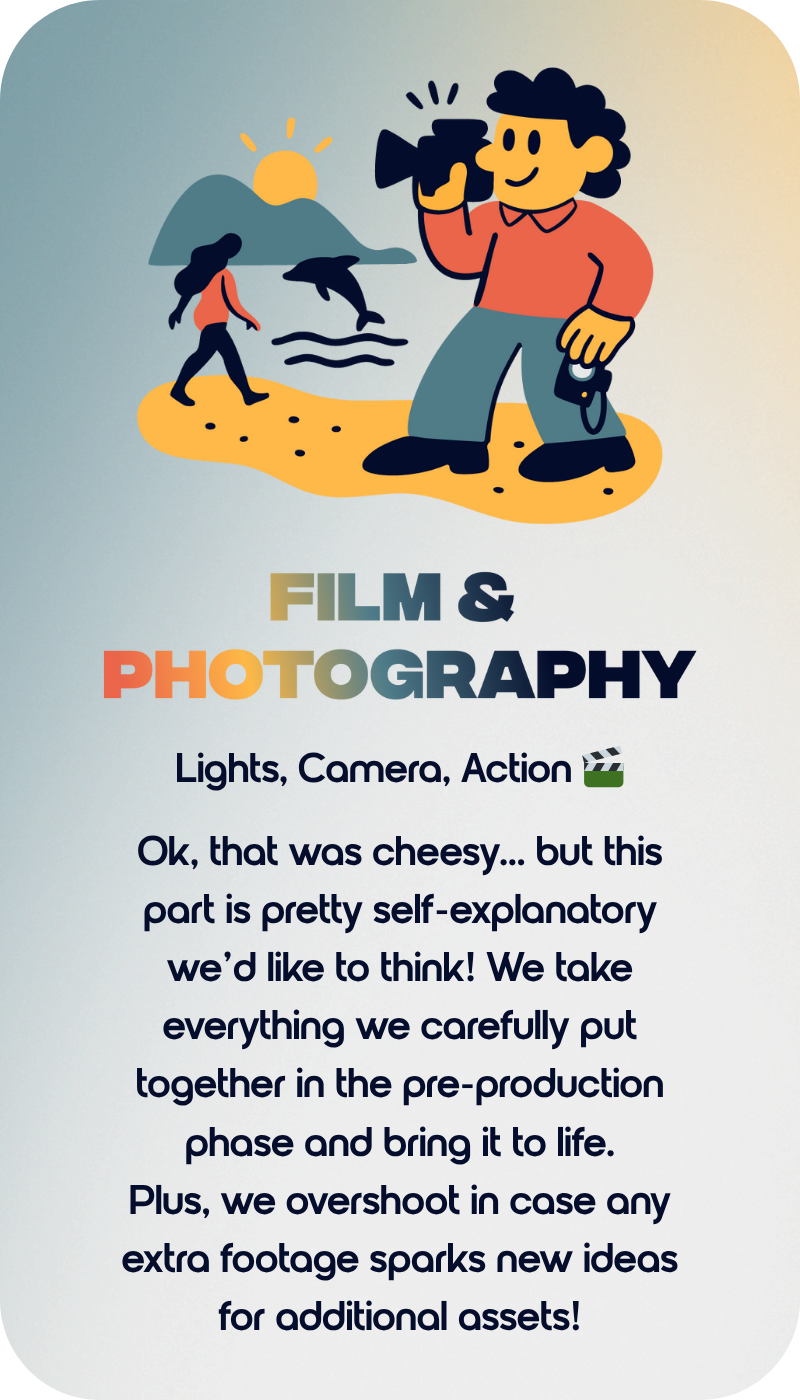 Johno is a highly skilled filmmaker and photographer with a knack for uncovering the story hidden within every place, moment, and brand. His work is shaped by a passion for creating visuals that inspire, connect, and transform bold ideas into reality.